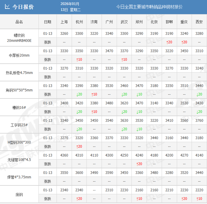 沙钢自2026年1月13日起废钢上调50元/吨,调后车运执行价:重一2440元/吨,重二2410元/吨,重三2380元/吨。