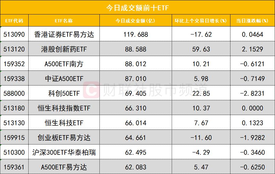 从成交额前十的ETF来看,香港证券ETF易方达(513090)成交额位居首位,港股创新药ETF(513120)成交额位居次席。