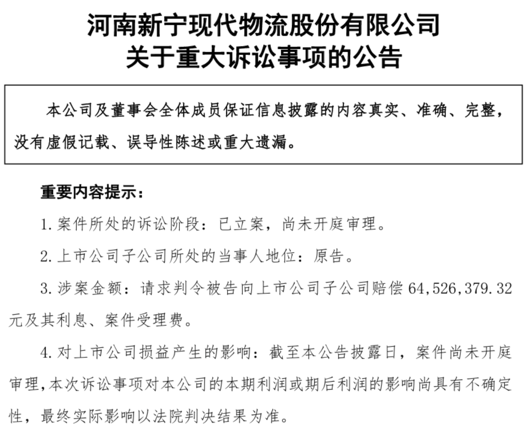 案件落幕之际,新一轮责任追溯已然启动。新宁物流子公司已起诉火灾责任方珠海冠宇电池公司,索赔金额达6649万元。