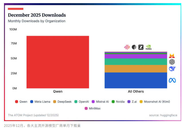 此外,根据全球AI开源社区Hugging Face的最新统计数据,截至2026年1月,阿里云旗下的通义千问系列模型累计下载量已超过7亿次,成为该平台下载量最高的开源AI系列。数据显示,仅在2025年12月,该系列模型的下载量便超越了排名第二至第八位模型的下载总和。