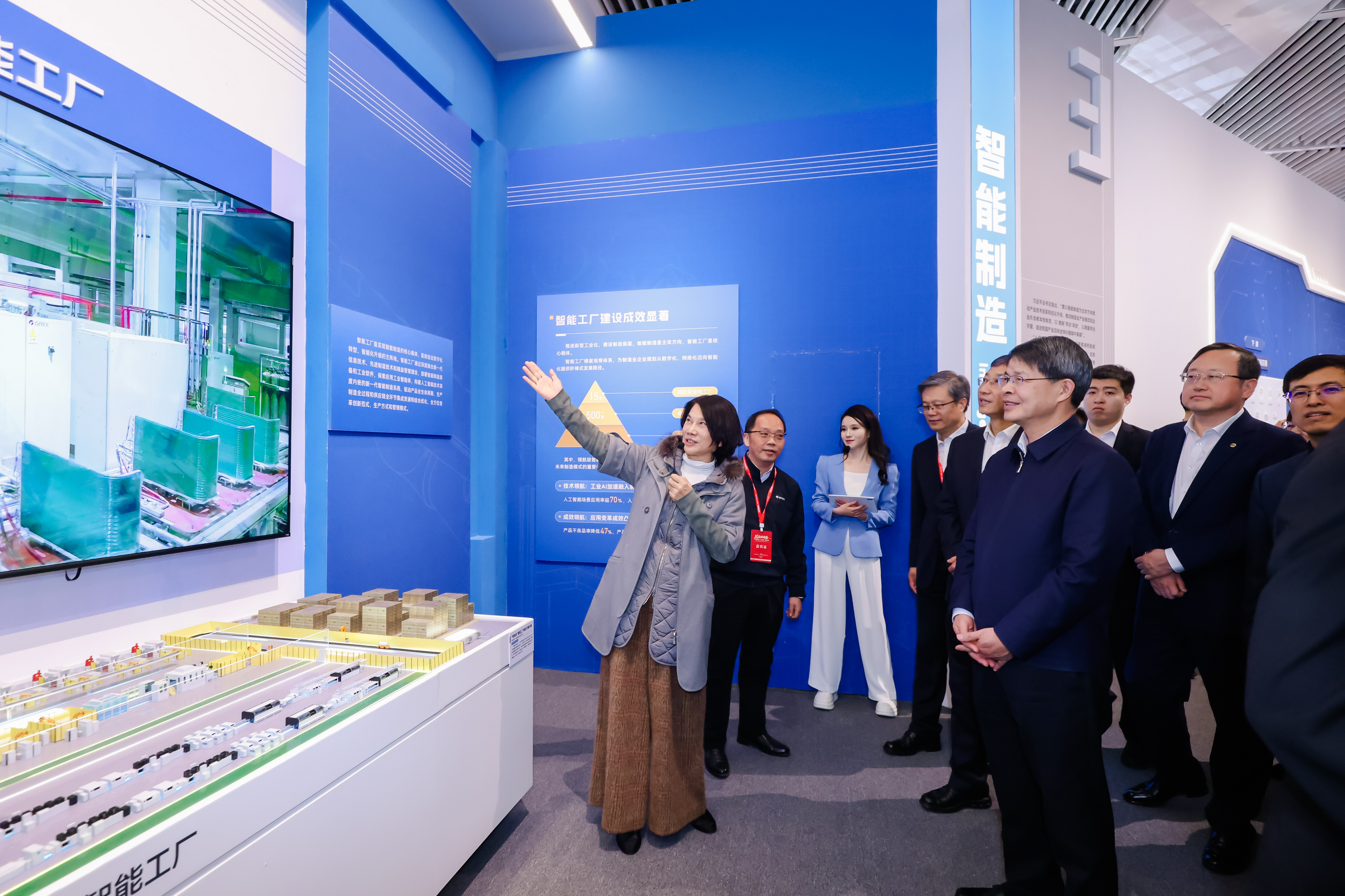 2025年12月,格力凭借“全价值链格力协同屋空调智能工厂”项目,成功入选全国首批最高层级的“领航级”智能工厂培育名单,也是广东省唯一入选该名单的企业。展览现场,该项目通过沙盘生动呈现了钣金、控制器、注塑、两器及总装五大智能车间的协同运作,生产效率提升200%、数字化覆盖率100%,成为全球家电制造业数字化转型的标杆典范。