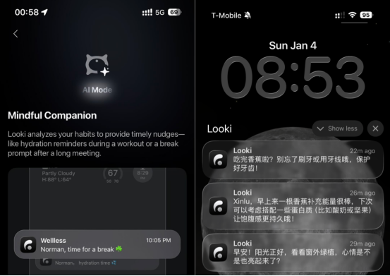 这意味着Looki的定位,不是一个传统意义上的可穿戴设备,而是具备情境感知能力、与人类用户形成长期互动关系的智能终端。