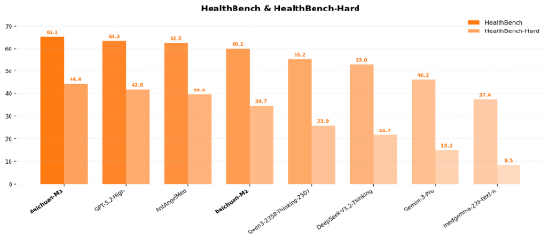 新浪科技讯 1月13日晚间消息,今日举办的Baichuan-M3模型发布媒体沟通会上,百川智能发布并开源了新一代医疗大模型Baichuan-M3,宣布其在全球最权威医疗AI评测HealthBench中以65.1分的综合成绩位列全球第一;在专门考验复杂决策能力的HealthBench Hard上,也以44.4分的成绩夺冠。在医疗领域实现了对GPT-5.2的全面超越。
