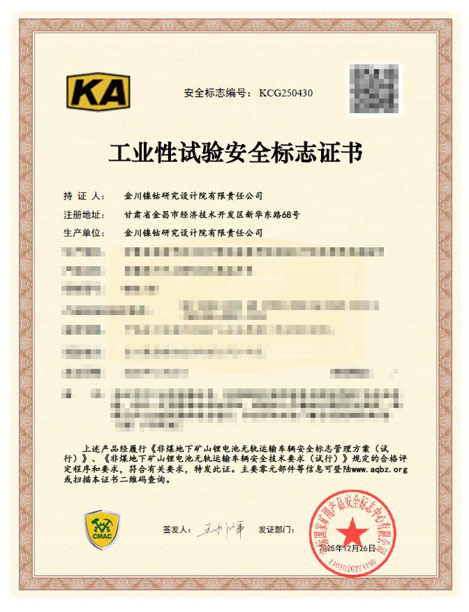 近日,金川集团自主研发的新能源无人驾驶地下矿卡获“非煤地下矿山锂电池无轨运矿车”工业性试验KA证书,标志着该矿卡在安全性、可靠性和合规性方面通过国家权威机构的系统验证,为后续示范应用和规模化推广奠定了坚实基础。
