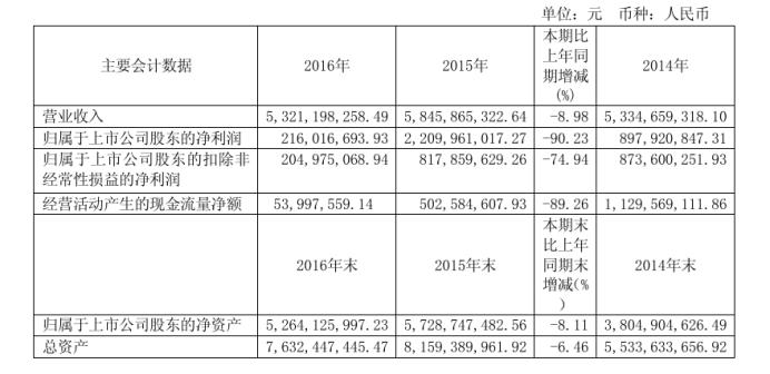 2015 年,上海家化营业收入增幅骤降至 9.58%,已失往日增长势头。而真正的警报在 2016 年拉响,公司业绩迎来"双杀"式下滑:公司实现营业收入约 53.21 亿元,同比减少 8.98%;归属于上市公司股东的净利润约 2.16 亿元,同比减少 90.23%。