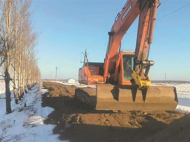 工作中,管理区工作人员通过对辖区田间道路开展细致排查,全面摸清路面破损、沟渠淤塞、路基沉降等情况。结合冬季施工气候特点,科学制订“一路一策”靶向修缮方案,精准调配挖掘机、装载机、翻斗车等机械设备,有序筹措沙土、石料、碎石等建筑耗材,对破损路段进行集中铺垫、对坑洼地带进行精细平整、对淤塞沟渠进行彻底疏通,确保修缮工作高质高效推进。