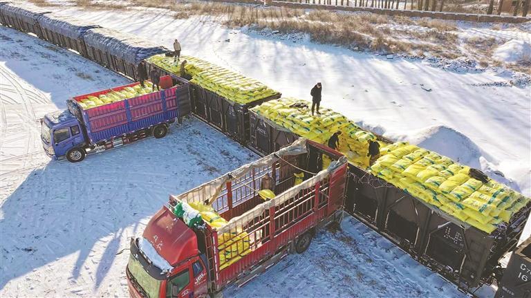 北大荒农业股份新华分公司铁路专线运输装卸肥料。李云玮摄
