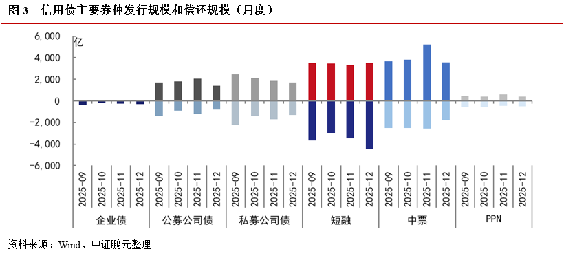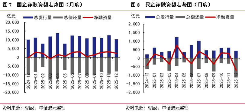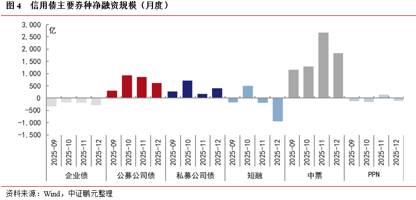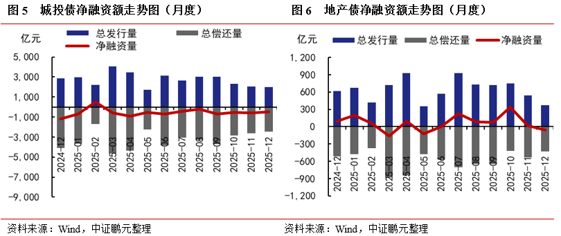 1. 12月非金融企业信用债[1]净融资1,580.85亿元,环比下降55.15%,前一年同期为净偿还535.17亿元,城投已连续10个月净偿还