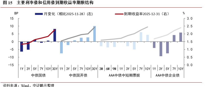 2. 12月末信用债和利率债短端收益率下行、长端上行,利率曲线趋于陡峭化