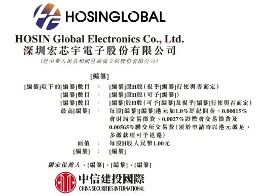 2026年1月1日,深圳宏芯宇电子股份有限公司(下称“宏芯宇”)向联交所主板提交上市申请,中信建投国际是其独家保荐人。