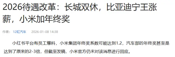 据CNMO了解,在某社交平台上另有自称小米的员工透露,小米集团年终奖系数可能达到1.2,汽车部的年终奖甚至是达到了原来的2-3倍。