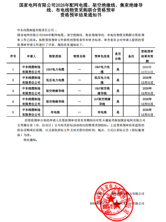 2026投标推荐 | 国网中标缆企:中东线缆制造有限责任公司
