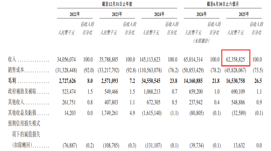 2025年上半年,赛力斯又向华为采购了200亿元,占总采购额的比例继续提升至33.0%。