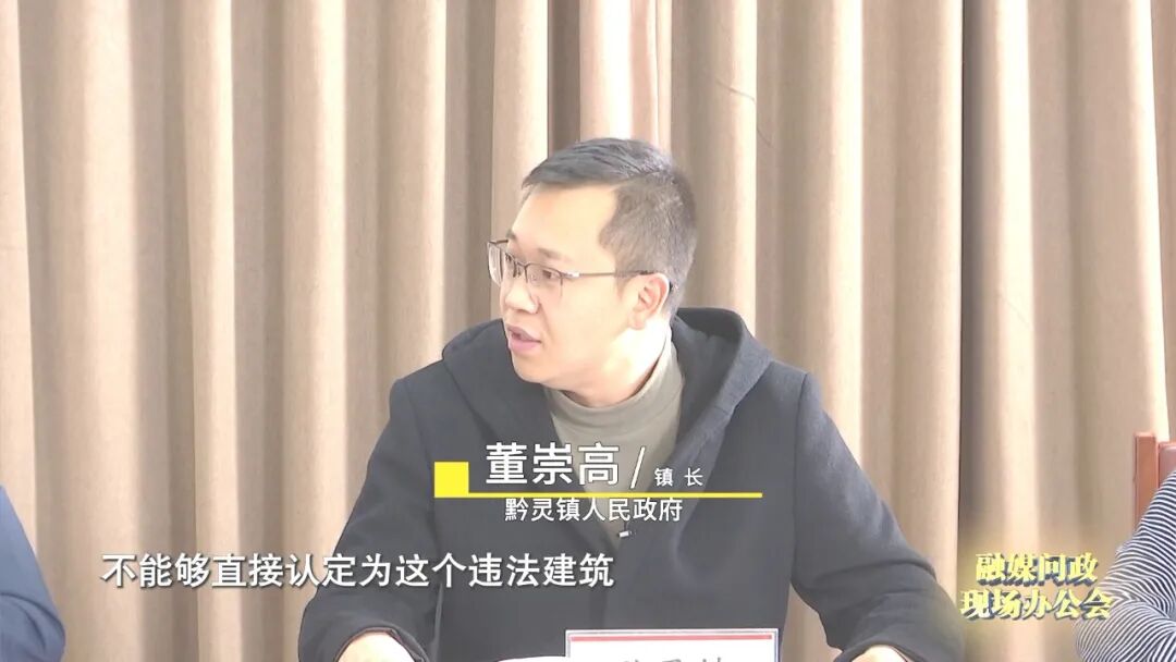 云岩区黔灵镇人民政府镇长 董崇高:当时,我们第一时间对接了云岩区综合行政执法大队到现场,反馈的是根据现状不能直接认定这个违法建筑,如果要认定违法建筑,需要规划部门依据原始的规划方案去核查,才能够进行认定。