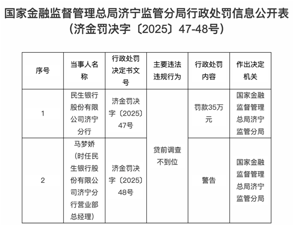 2026年1月6日,国家金融监督管理总局济宁监管分局公布的一则行政处罚,再次将民生银行(600016.SH)的合规问题推到台前。