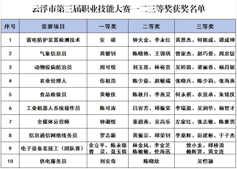2025年12月底,云浮市第三届职业技能大赛圆满完成所有赛项。在10个赛项的激烈角逐中,63名选手斩获一、二、三等奖,145名选手获优胜奖,59名佼佼者被认定为“云浮市技术能手”,9名工作人员荣获“优秀赛务工作者”,这场覆盖多领域的技能盛宴,不仅展现了云浮技能人才的过硬实力,更为城市高质量发展注入了强劲的“技能动能”。
