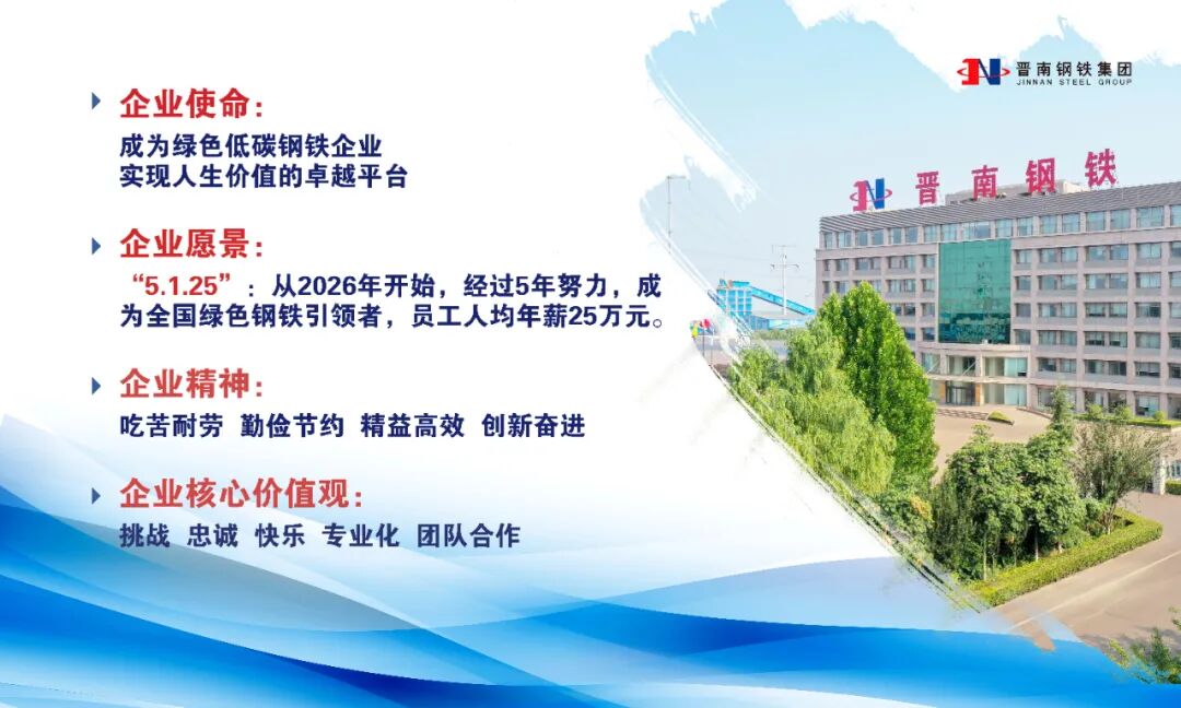 此次“双碳最佳实践能效标杆示范工序/设备”验收公示,是对晋南钢铁绿色低碳发展成果的高度肯定,更是企业迈向更高质量发展的新起点。面向未来,晋南钢铁将始终坚守“高端化、智能化、绿色化”发展方向,持续巩固能效提升成果,深化技术改造与精细化管理,不断拓展绿色低碳转型新路径,致力于打造成为受人尊敬的世界特钢引领企业,为钢铁工业绿色低碳高质量发展、为国家“双碳”目标实现贡献更加强劲的“晋南钢铁力量”!
