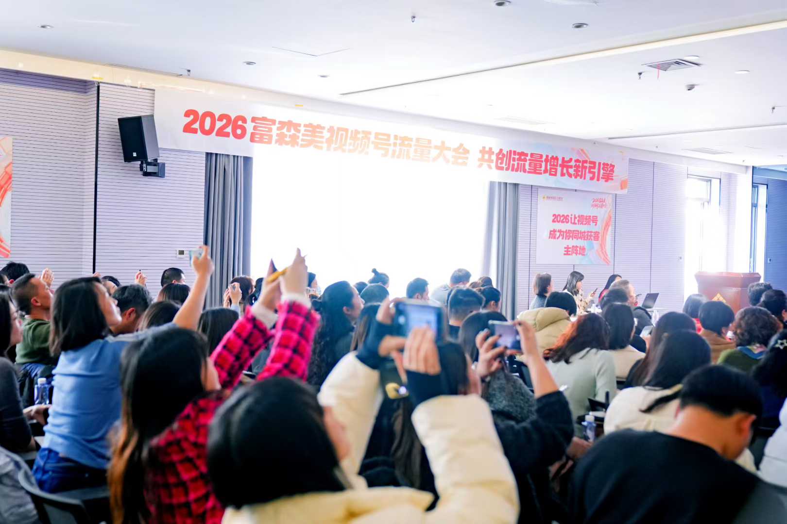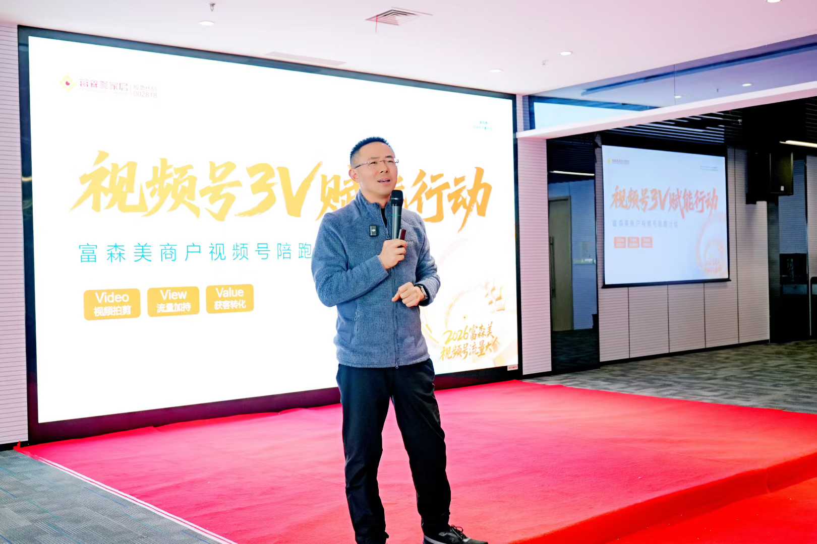 1月14日,2026富森美视频号流量大会落幕。本次大会聚焦视频号社交传播与私域经营价值,腾讯集团以及新浪家居专家现场拆解行业成功案例,深度解读2026视频号内容趋势与爆款逻辑,同时,富森美副总经理吴宝龙现场发布了“商户视频号3V赋能行动”,首期将投入100万,三大行动赋能商户视频号同城获客。到场合作伙伴通过实战分享、趋势研判明确了视频号“同城熟人+高信任传播”的获客路径,不少商户明确了2026视频号运营布局。此次大会为家居行业链接视频号流量红利搭建了高效平台,后续富森美将持续助力商户打造线上“新名片”,挖掘私域增长新空间。