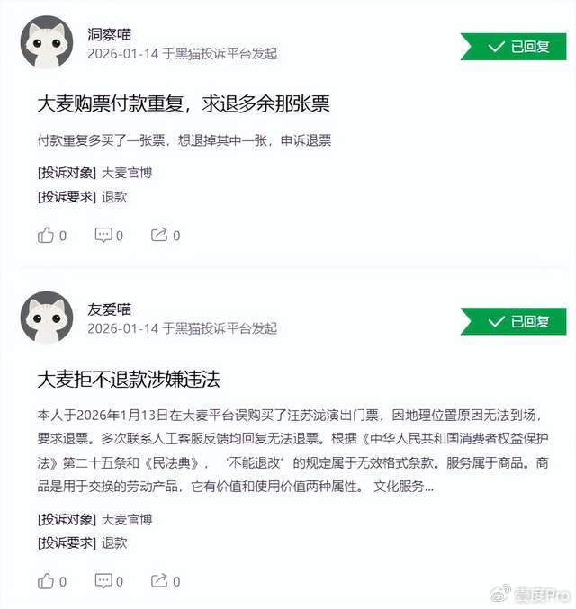 据消费保平台此前发布的《票务平台投诉分析报告》显示,2025年1月至2025年10月票务平台的投诉量为41278件,大麦网以19521件投诉位居榜首,远超猫眼(12384件)、淘票票(1608件)和票星球(1551件)等平台。