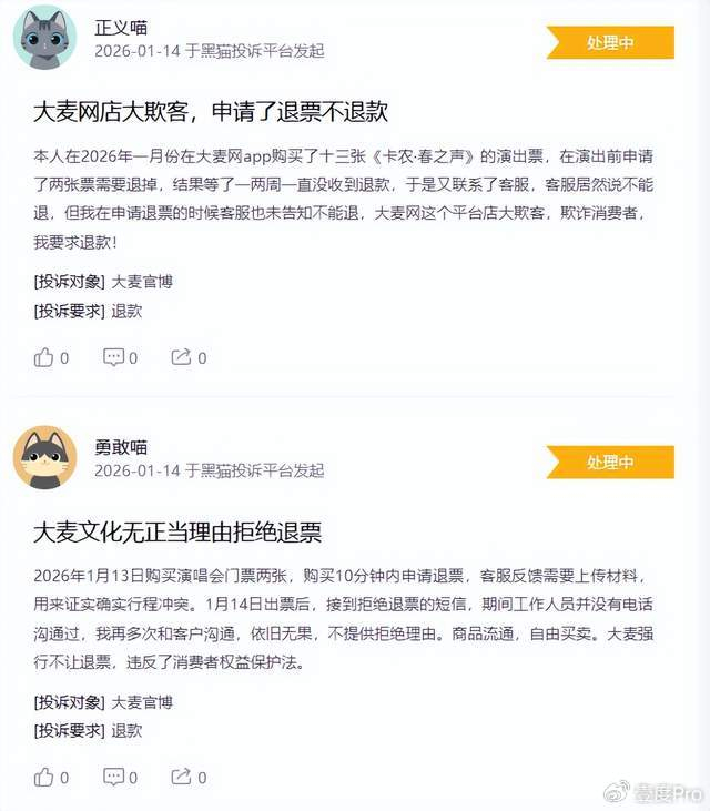 但在上述光鲜业绩背后,在黑猫投诉[下载黑猫投诉客户端]上,有大量的消费者投诉,直指在使用大麦网的过程中,遭遇购票难、退票难、黄牛泛滥等问题。