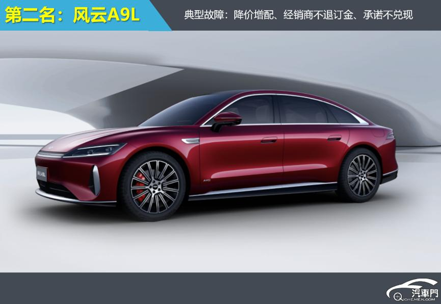 汽车质量投诉点评:2025年,风云A9L的投诉指数达到了1565.35,降价增配、购车订金不予退还、承诺不兑现是其上榜的主要原因。这其中,有关降价增配的投诉指数达到了337.35,占比22%。去年11月,风云A9L光辉(四驱版)上市新增了多项配置且售价大幅下探,此举引发了大量老车主不满。购车订金不予退还也遭到了车主投诉。从反馈来看,该问题多因销售误导和合同条款模糊导致。承诺不兑现则表现为赠送的充电桩长时间不安装、小订用户权益不兑现、畅行礼包不兑现等。