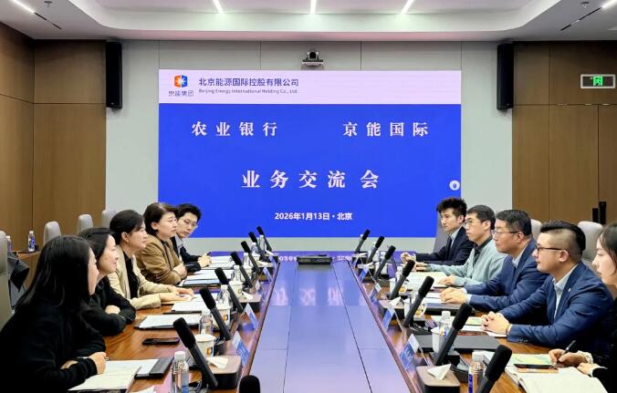 1月13日,北京能源国际控股有限公司副总裁黄慧在北京会见农业银行总行公司业务部副总经理杨小宇一行,双方围绕绿色能源领域的金融业务合作进行了全方位、深入的座谈交流,共谋产融协同发展新路径。