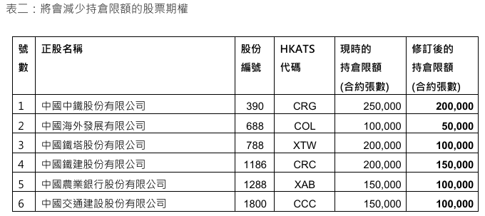 港交所公布股票期权持仓限额年度检讨结果 4月1日起生效