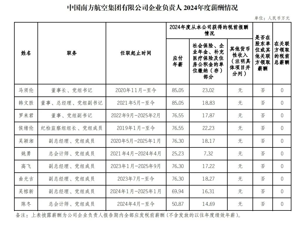 国资委披露80多家央企负责人年薪:中石油董事长97.85万元、中石化董事长93.55万元、南方电网董事长95.83万元、南航董事长85.05万元