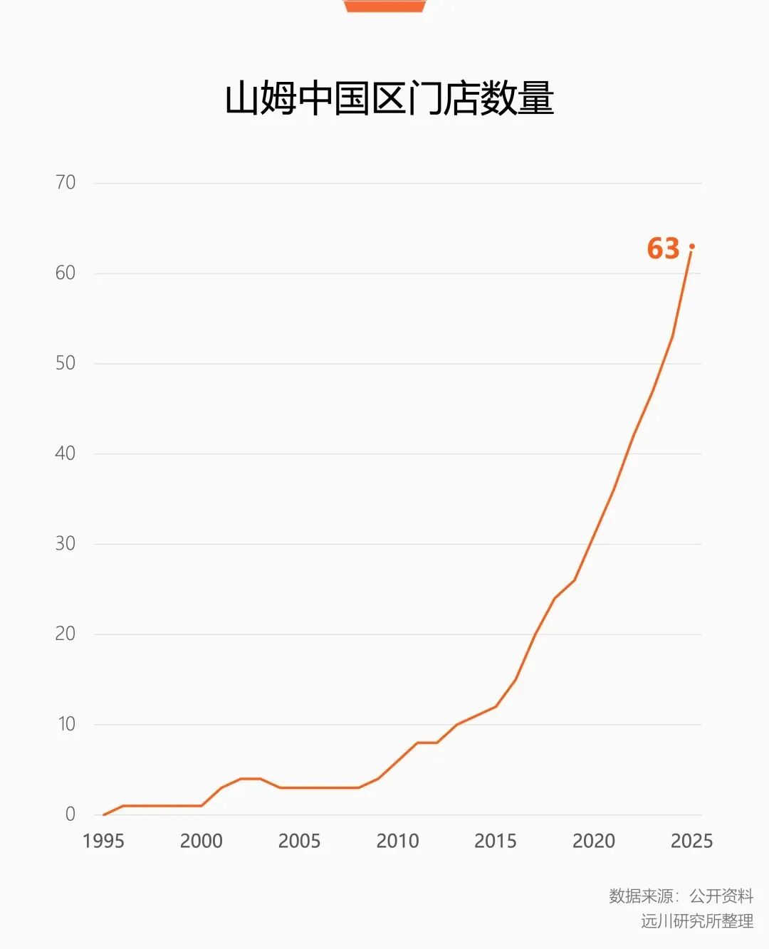 2015年,山姆中国门店在“山姆+沃尔玛”的占比只有2.8%,如今已经提高到了18.5%(63家)。