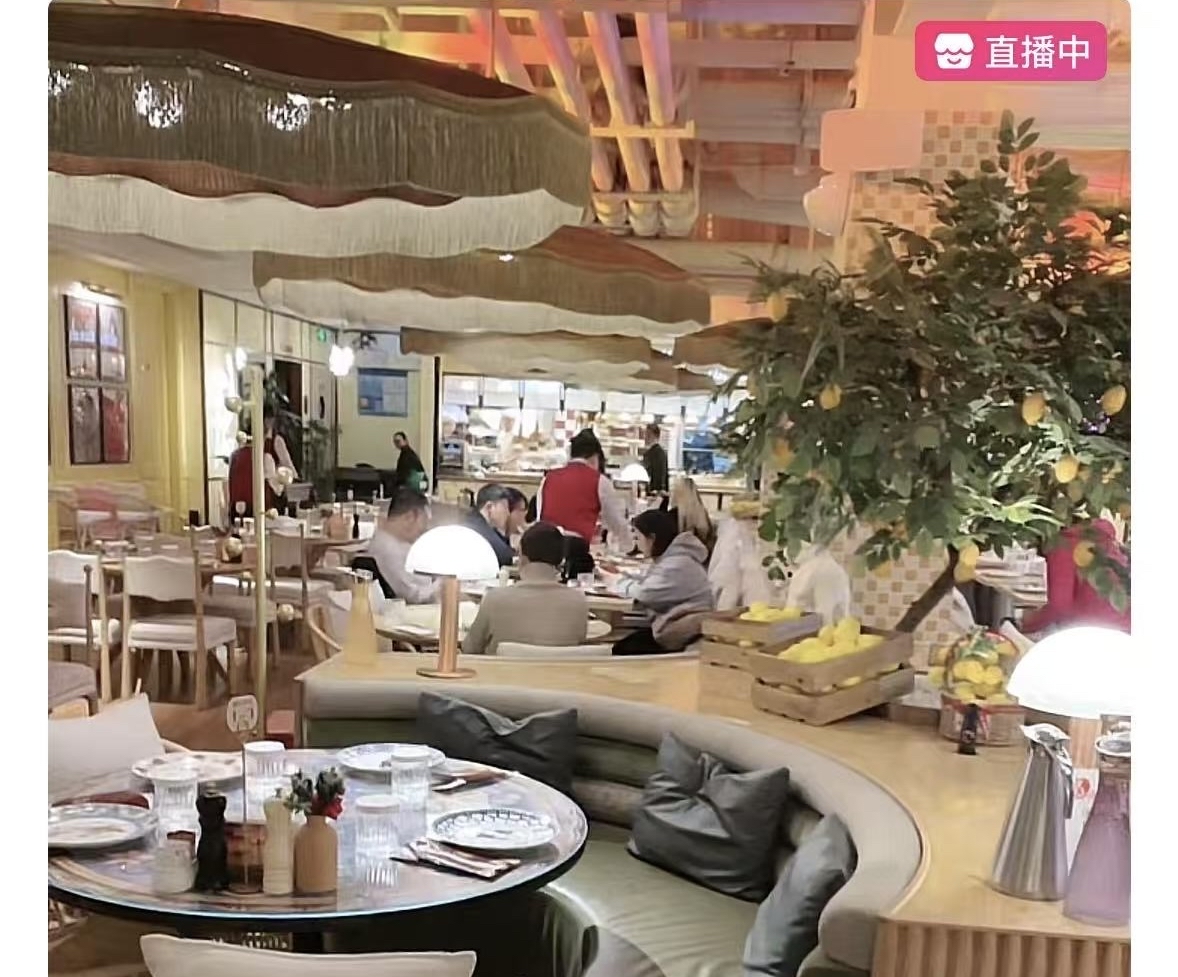 部分直播间将镜头对准了后厨,展示后厨房的干净以及现炒等特色。也有不少餐厅的直播间聚焦大堂,展示店内环境和人气,但在这种直播间,就餐的顾客被动成为了直播间的主播。