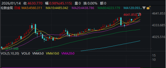 1月14日晚间,伦敦金现价格一度突破4640美元/盎司,再创历史新高。国内市场上,14日上海黄金交易所Au99.99合约价格最高达每克1038.58元,再创历史新高,2026年以来该合约价格累计再涨逾6%。而在此前的2025年,上海黄金交易所Au99.99合约价格全年累计已涨近六成。