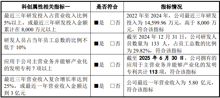 2022年至2024年,公司累计研发投入1.46亿元。截至2024年末,公司研发人员数量为133人,占员工总数的比例为29.82%。截至2025年6月30日,公司拥有的应用于主营业务并能够产业化的发明专利共计113项。