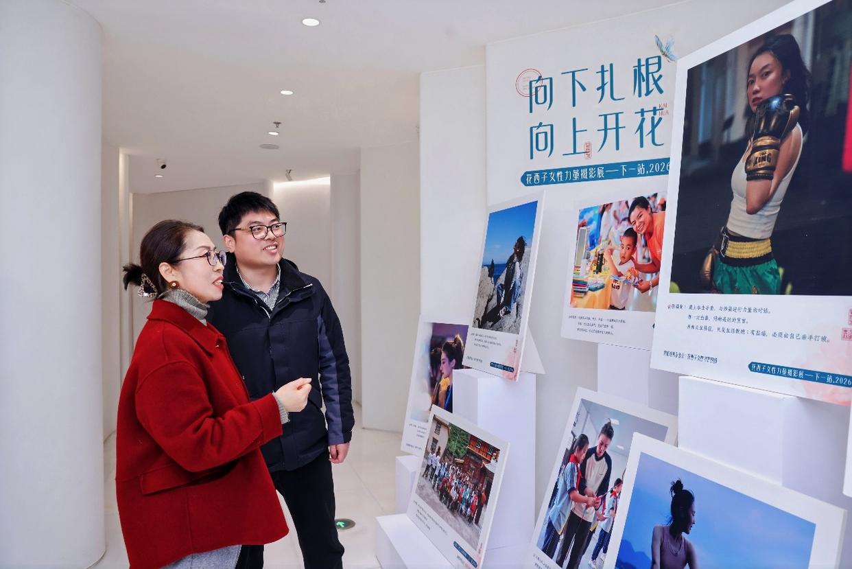 去年12月,名为“向下扎根,向上开花——下一站,2026”的女性力量摄影展在花西子全球首家旗舰店“西湖隐园”举行。展览聚焦女性心理健康,通过普通人镜头记录“她力量”——有翻越亚洲最高山时的雀跃身影,有新手妈妈初次拥抱生命的瞬间,也有陪跑员与视障跑者在赛道上的奋力拼搏……