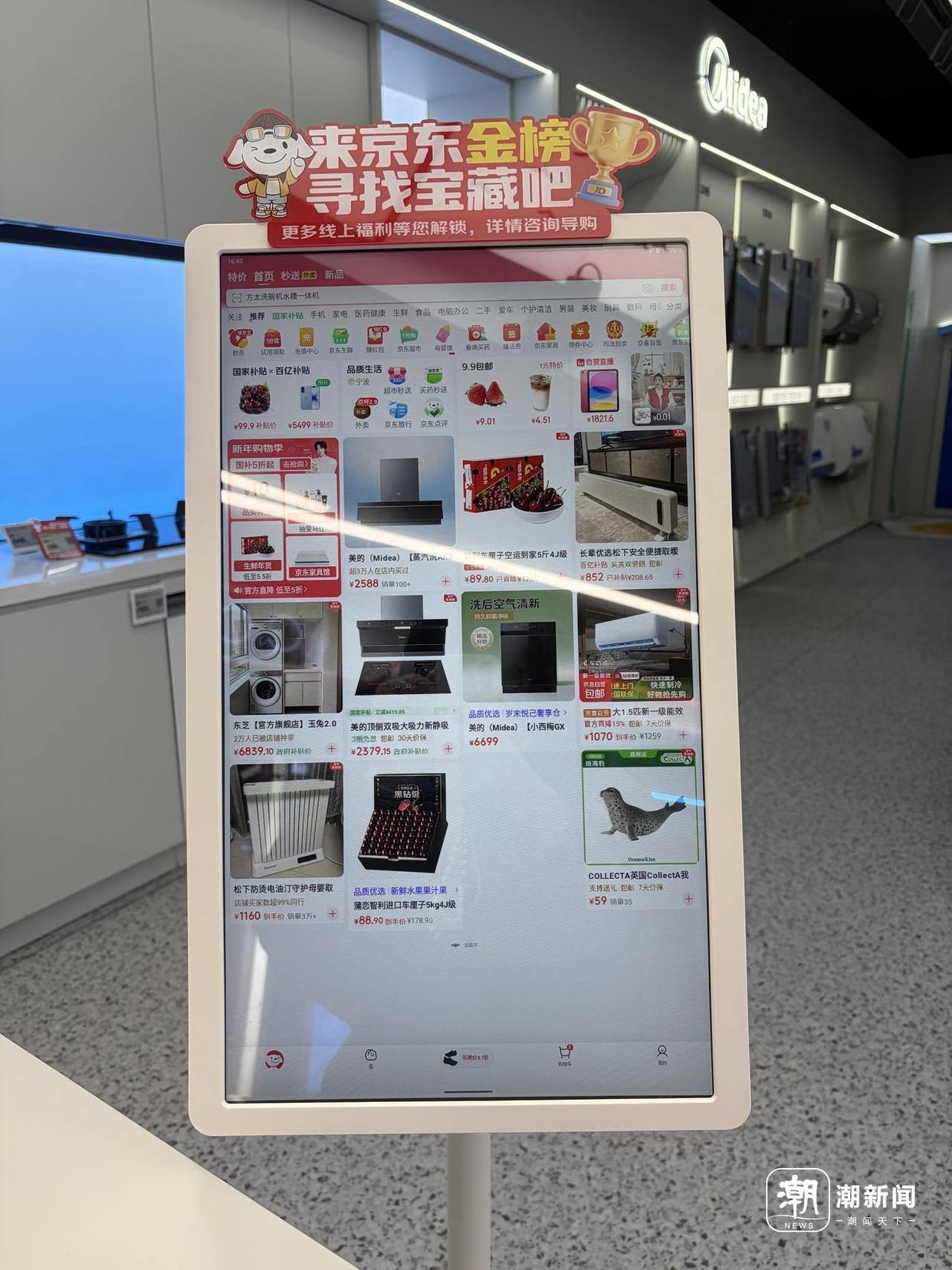 张爱明举例,京东MALL在选品时会充分参考线上销售数据,且商场每个品牌门头处都配有智能屏,若消费者在店内未找到心仪商品,可随时浏览线上商品,工作人员也会进行现场讲解。
