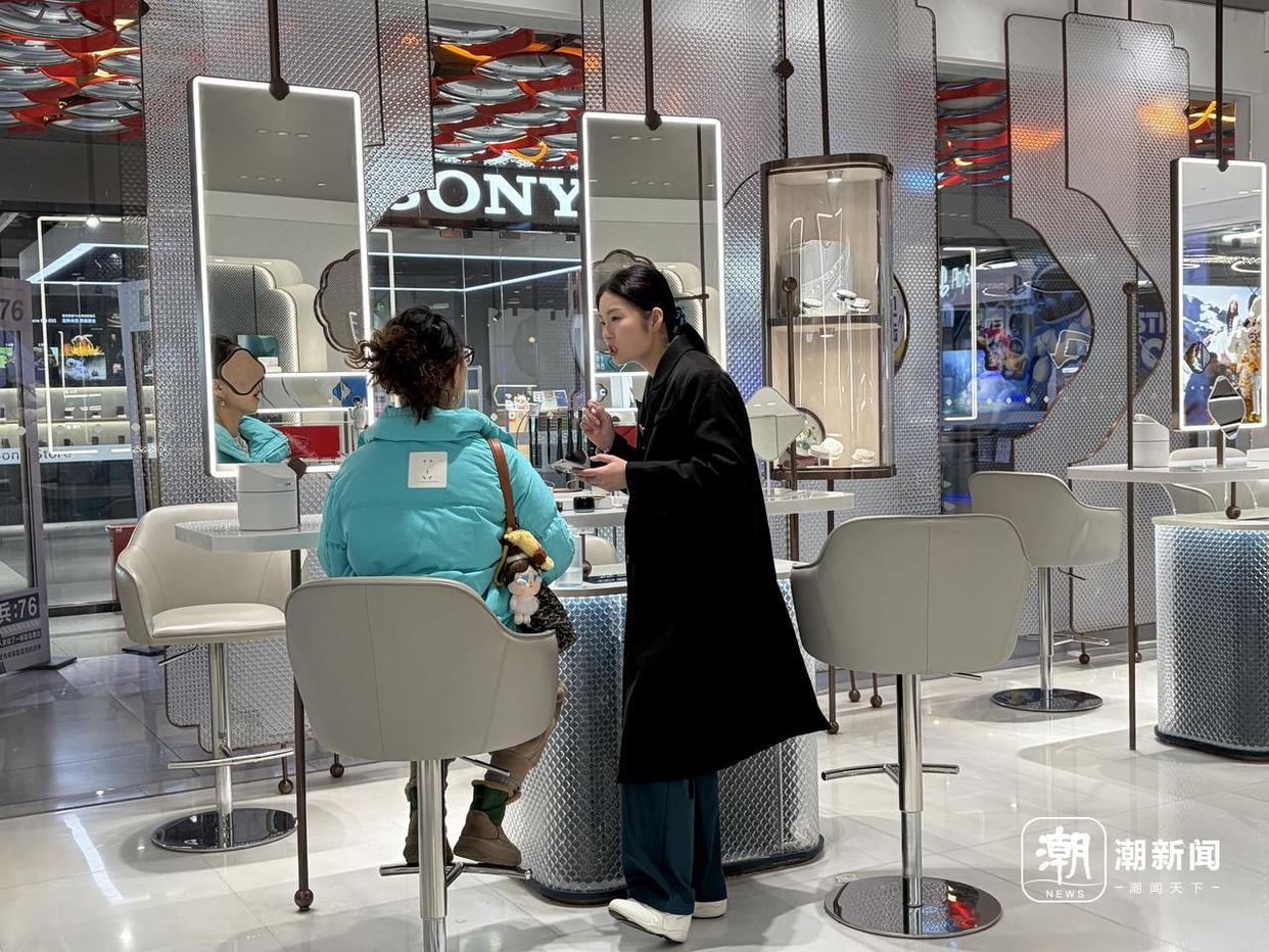花西子百货店开业第一天,倪璟立刻约上好友一起来店里试色,“销售刚刚每个色号都给我试了一遍,也结合我的肤质给了一些建议。”她挥了挥手上刚在柜台付了款的遮瑕盘感慨:“试过心里就有底了。”