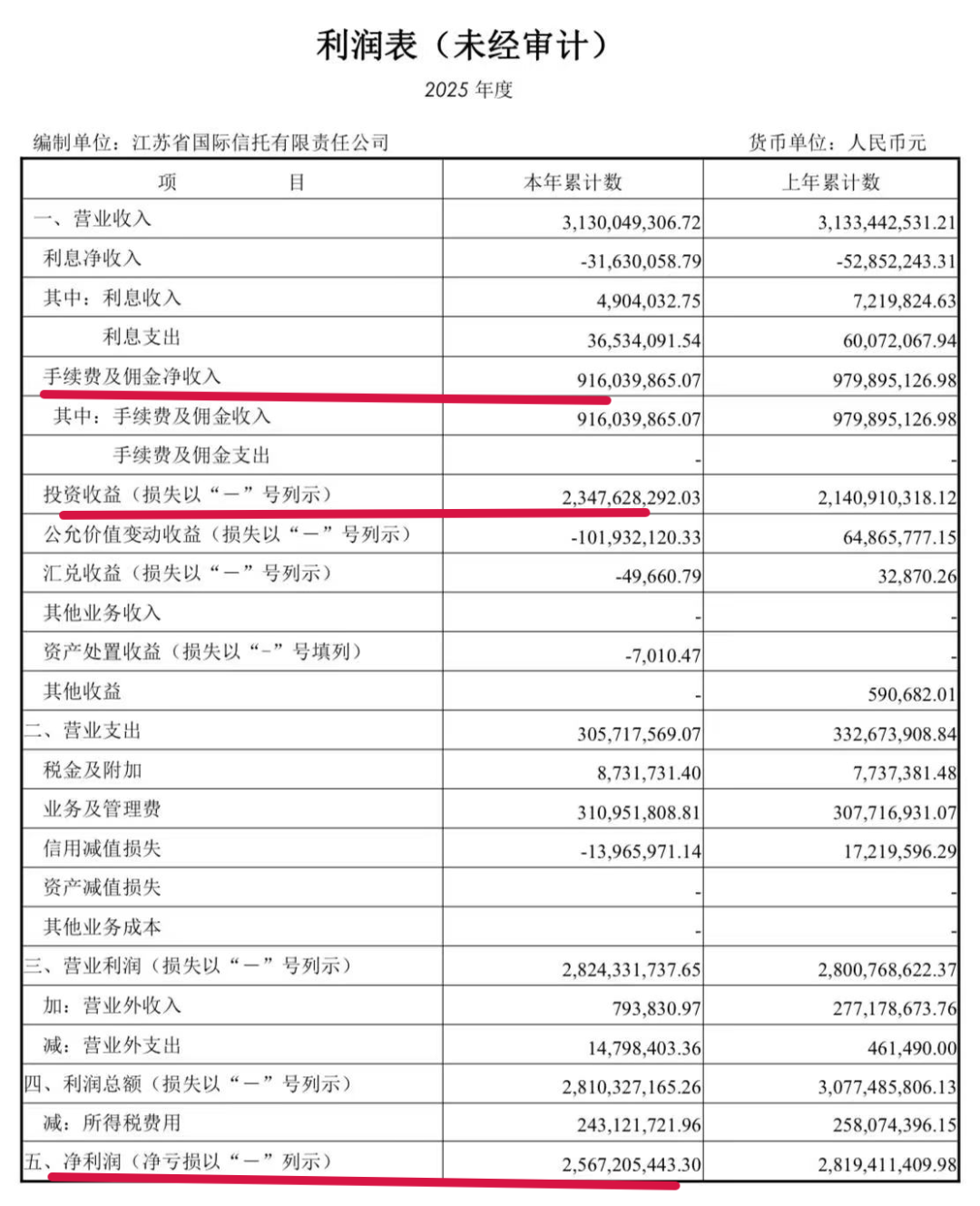 近日,江苏国信股份有限公司发布自愿性信息披露公告,旗下控股子公司江苏省国际信托有限责任公司(简称“江苏信托”)2025年度未经审计的财务数据正式揭晓。