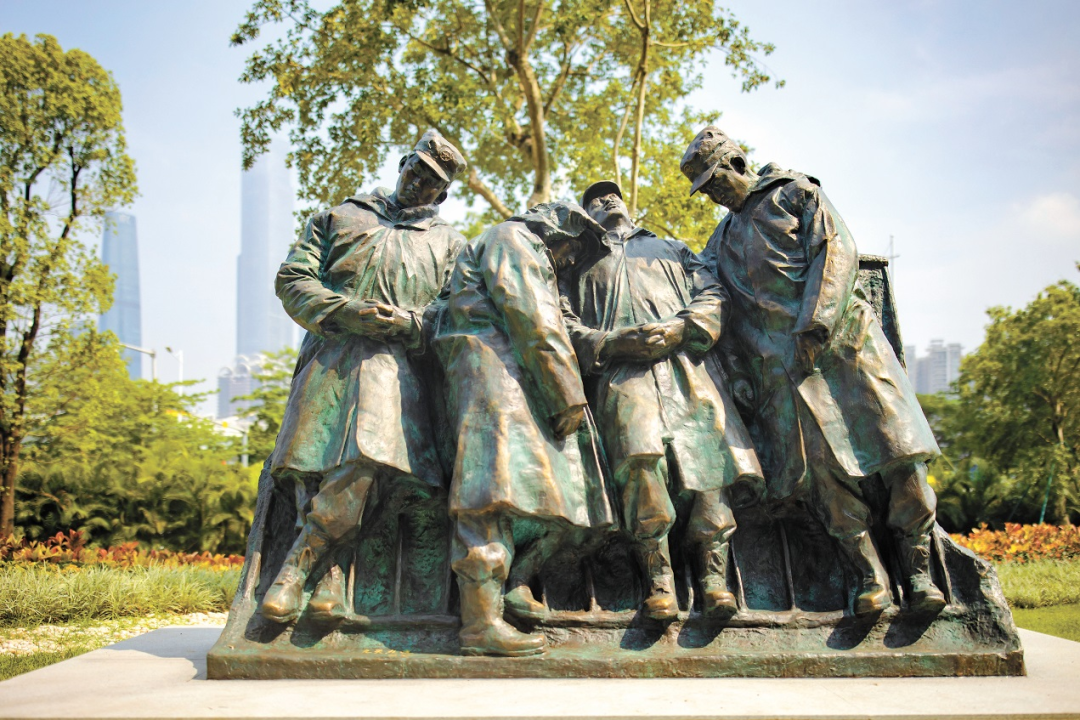 “四个大兵”雕塑定格了抗冰救灾保春运时的经典影像。广州日报全媒体记者陈忧子摄