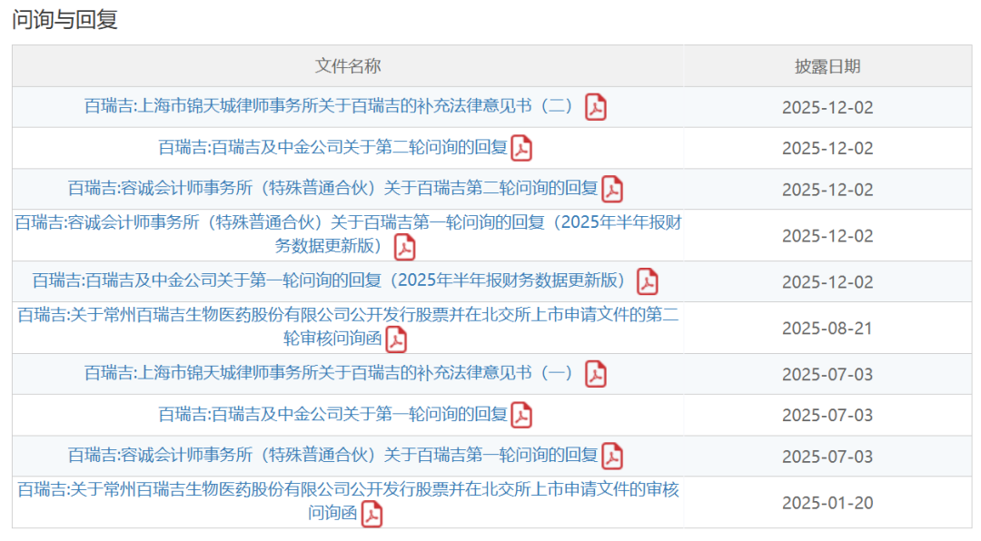 IPO动态显示,百瑞吉此前已经历过北交所两轮问询,并做出了回复。