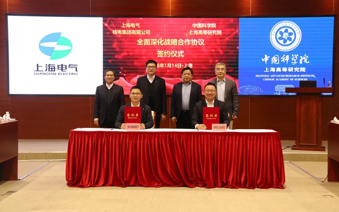1月14日上午,上海电气核电集团有限公司(以下简称“核电集团”)与中国科学院上海高等研究院(以下简称“上海高研院”)在上海签署战略合作协议,并同步举行上海电气1.3GHz超导腔模组及800kW电子束流收集器上线就位仪式。上海电气集团党委书记、董事长吴磊,上海科技大学校长、中国科学院院士封东来,中国工程院院士、上海光源科学中心主任赵振堂,上海高研院党委书记、院长黄政仁出席。