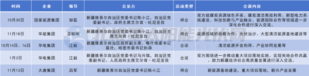 同样,新疆凭借2250万千瓦“沙戈荒”基地规划与“疆电外送”通道的潜在机遇,成为央企角逐的另一焦点。中国华电董事长江毅两度与新疆会谈,聚焦新能源基地建设、新兴产业发展及重大项目落地等。华能、大唐、国家能源集团则分别围绕光伏治沙、大型清洁能源基地建设深入交流,国家能源集团更将合作延伸至煤炭资源绿色开采、科技创新与产业融合等领域。