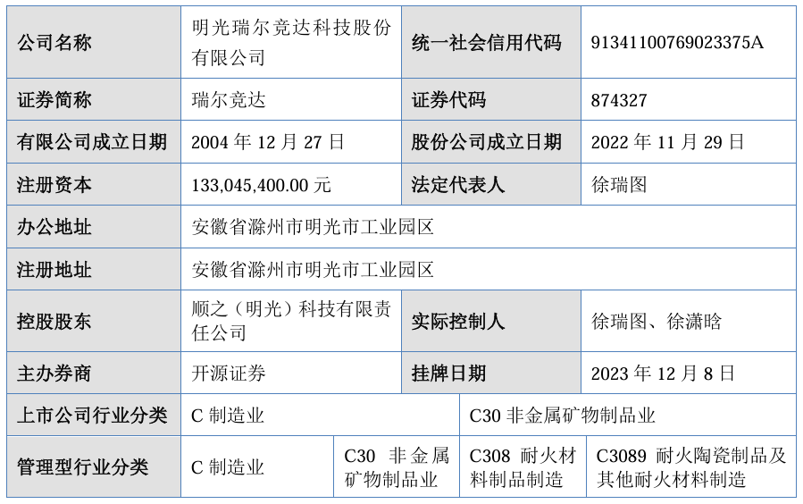 据招股书信息,瑞尔竞达作为一家专业为高炉炼铁系统提供长寿技术方案及关键耐火材料的高新技术企业,主要从事炼铁高炉高效、长寿、节能、绿色、环保等技术与所需耐火材料的研发、生产和销售。