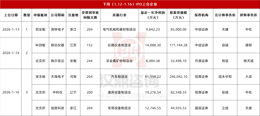 下周IPO上会企业一览