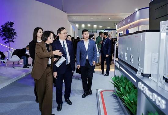 展会首日,比亚迪集团董事长兼总裁王传福、执行副总裁李柯、储能及新型电池事业部总经理尹雪芹等公司高层亲临储能展台视察指导,听取储能新品技术及中东市场进展汇报。
