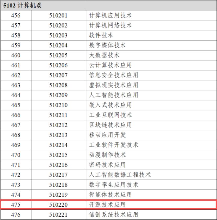 近日,记者从教育部网站获悉,《职业教育专业目录(2021年)》中正式增设“开源技术应用”(高等职业教育专科专业 510220)与“开源技术开发与应用”(高等职业教育本科专业 310216)两大专业。这一举措标志着开源教育正式纳入国家人才培养体系,将为我国快速发展的开源产业提供精准的技能人才支撑,填补当前行业面临的人才供给缺口。