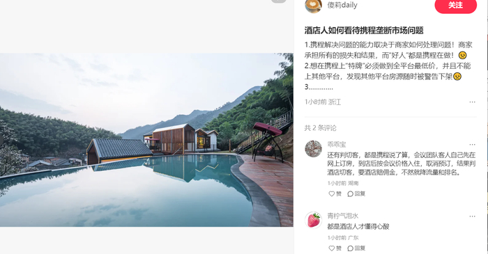 二是搞隐性二选一,虽然没明说,但你不跟携程签独家,不给它最低价,就给你限流,订单直接暴跌90%,商家想活下去只能妥协;
