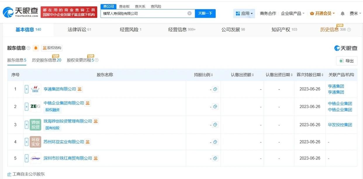 天眼查工商信息显示,近日,横琴人寿保险有限公司发生工商变更,注册资本由约31.4亿人民币增至约49.9亿人民币,增幅约59%。