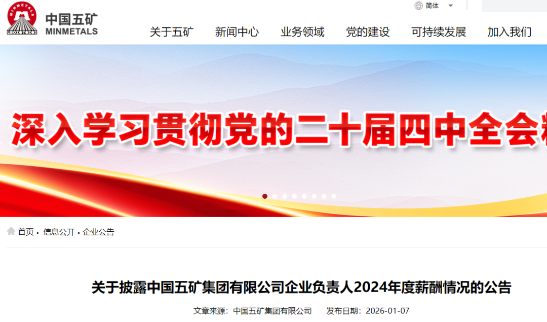2026年1月,中国五矿集团有限公司公布企业负责人2024年度薪酬情况。年薪最高为80.25万元,具体情况如下表: