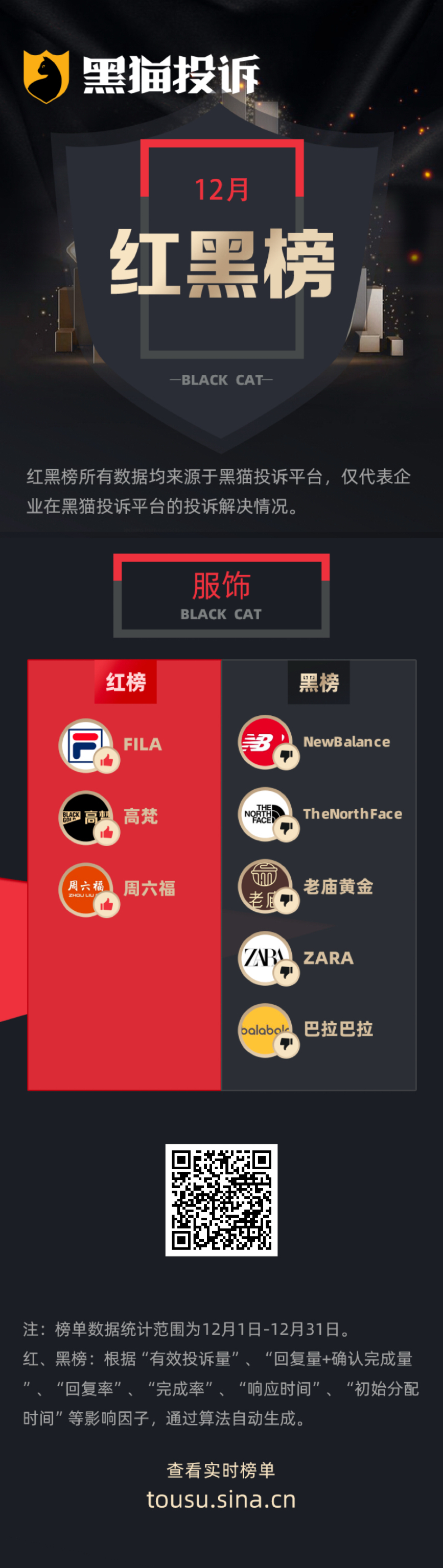 12月黑猫投诉服饰红黑榜:New Balance虚假拒退,诬陷消费者弄脏商品