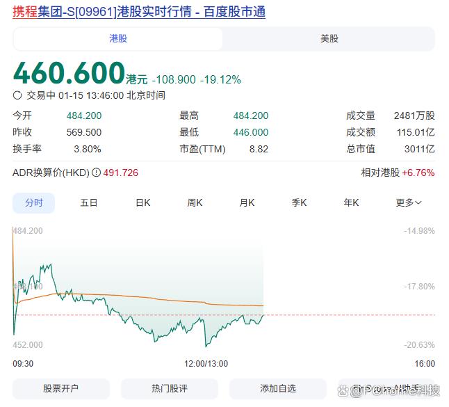 携程集团被市监局立案调查,港股股价暴跌19.12%