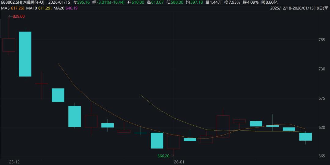 沐曦股份-U上市以来股价走势情况(元/股)